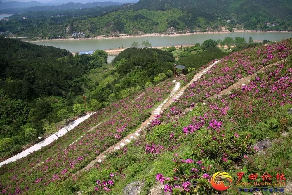 由云中漫步至七彩杜鹃岭,感觉人在山中走,云从脚下生。渺渺清风吹拂,犹如仙气扑面,爽了身子,醉了内心。此岭为整个花海的最高点,放眼望,方圆几十里湖光山色尽拥入怀,山也秀美,水亦清凌,山水照应,共生共荣。再观之,以此岭为中心,四周环状簇拥众多山峰,似百鸟朝凤,如众星拱月,硬是生成了形如花蕊、势同莲座的一方宝地,足见其所处之优越也!