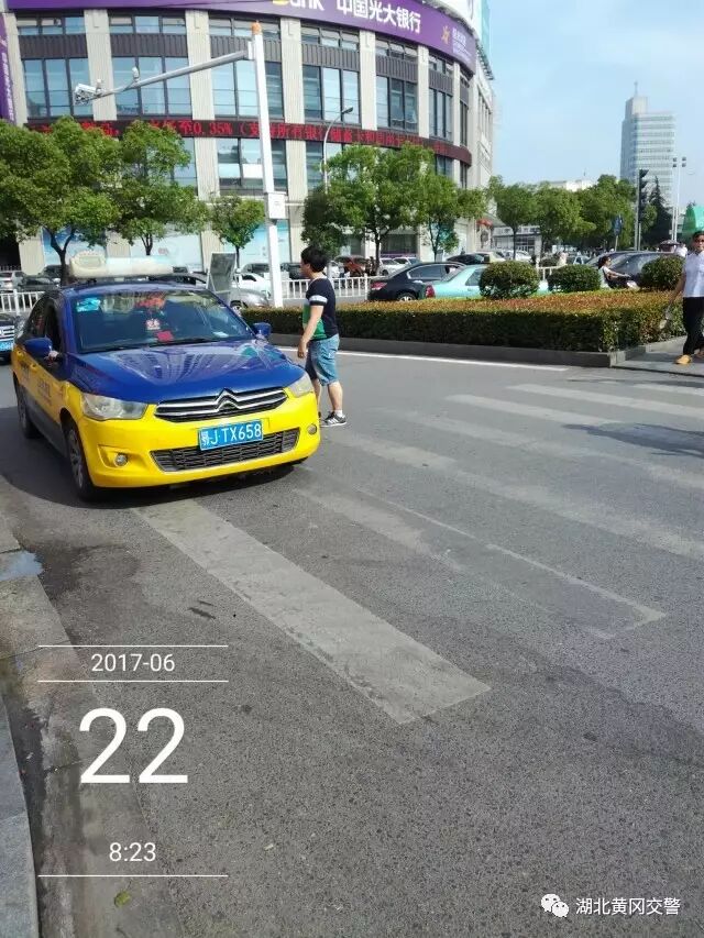 以下车辆于2017年6月22日在黄州大道与东门路交汇处为礼让斑马线,请车主注意文明出行,守法行车!