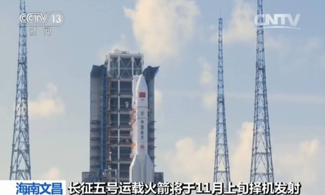 长征五号运载火箭将于11月上旬择机发射,进行首次飞行试验。