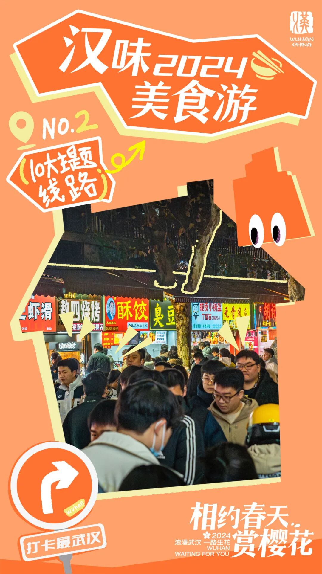 游玩本条线路,建议住在地铁2号线沿线:「街道口」站靠近武汉大学,商场聚集,交通也方便;如果爱烟火气,推荐住在汉口「江汉路」站周边,第一天前往武汉大学、东湖樱花园区域,第二天深度游玩汉口。