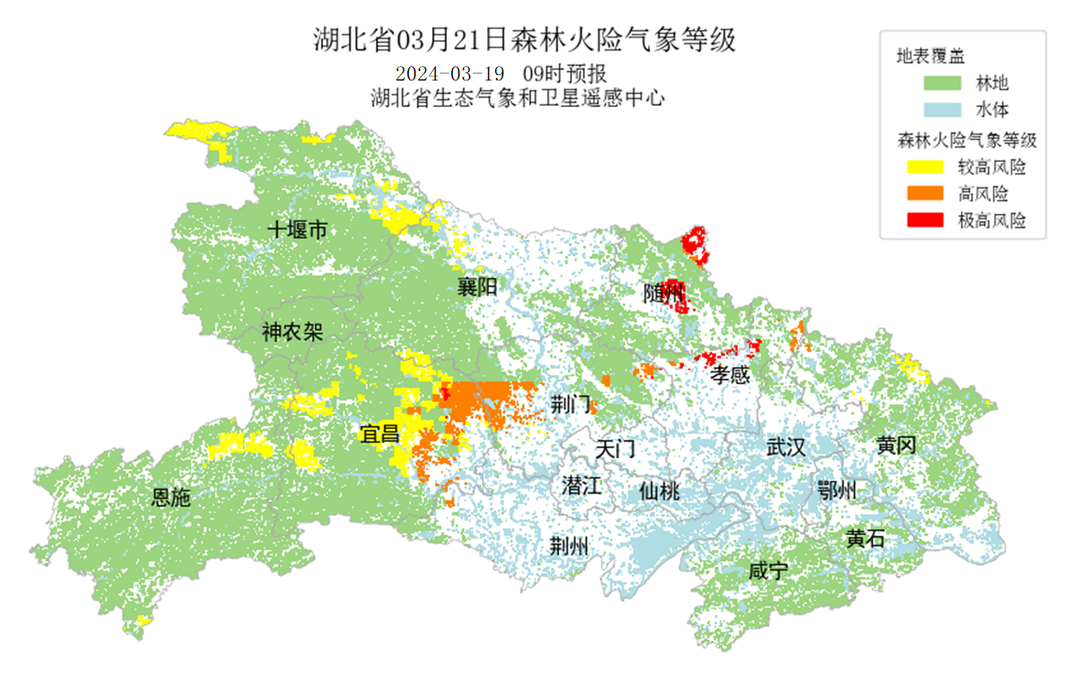20日鄂西北森林火险范围所有增加。21日森林火险范围基本维持。