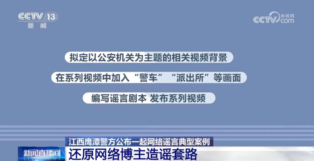 近期,江西鹰潭警方公布一起网络谣言典型案例。当地某网络博主,从去年开始持续发布虚假视频,其中一段视频提到,该网络博主的一位同学因为是校霸,被警察拉进了派出所。