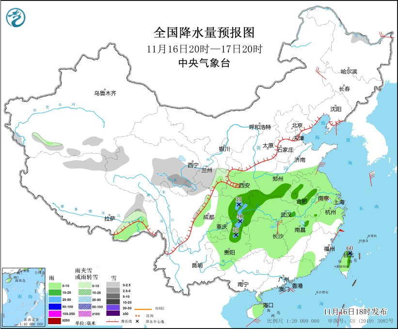 中央气象台预计,16日夜间至18日,强冷空气将影响中东部大部地区,气温普遍下降6~8℃,东北地区等地的部分地区降幅可达10℃以上。中央气象台预计,16日20时至17日20时,西藏东部和北部、青海东南部、甘肃南部、四川北部等地部分地区有小雪或雨夹雪,其中,青海南部、甘肃南部等地部分地区有中雪。陕西南部、河南南部、安徽中北部、湖北西北部、重庆大部、四川东部、贵州中北部、台湾岛东部等地部分地区有中到大雨。