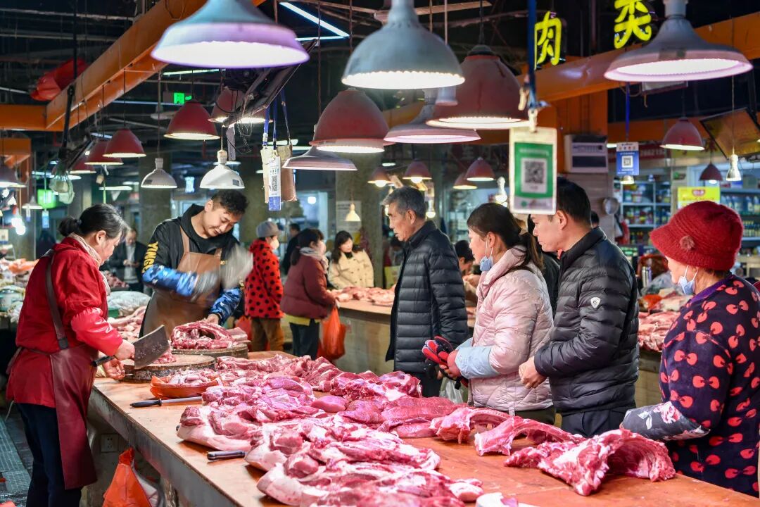 2025年1月6日,市民在安徽铜陵铜官区人民菜市场选购猪肉、牛肉等肉类商品。储著传摄(中经视觉)
