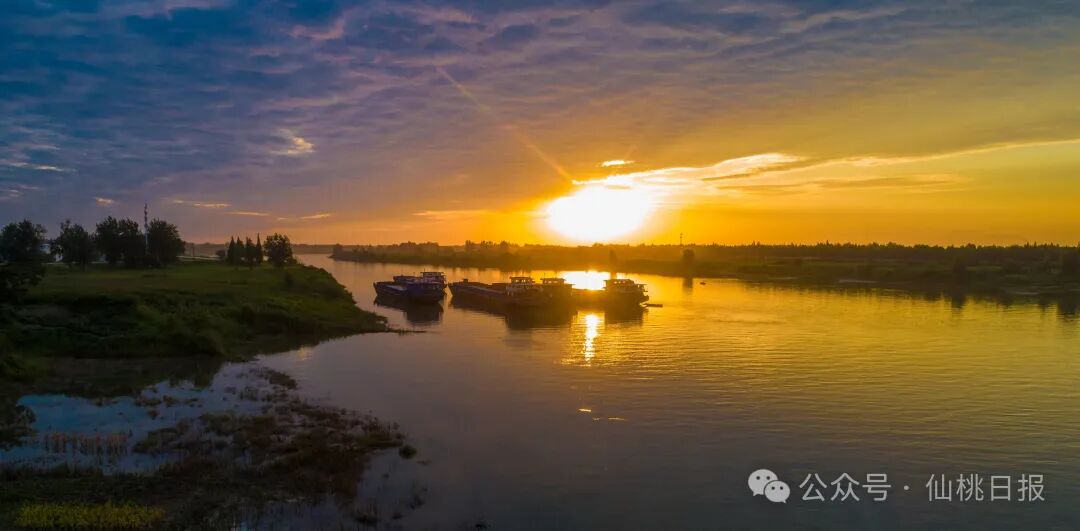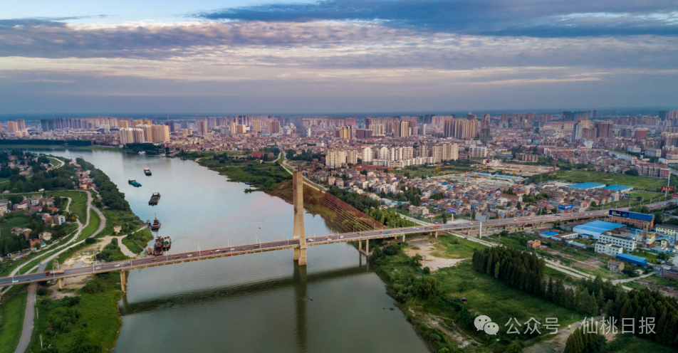 汉江是仙桃的母亲河,过境长度91.2公里。流经仙桃城区段,奔腾的江水划出一道优美的弧线,绵延10.63公里。 千百年来,奔腾不息的汉江滋养着仙桃这片土地,这里的人民乐江而居、倚江而兴,成为全省县域经济高质量发展排头兵。
