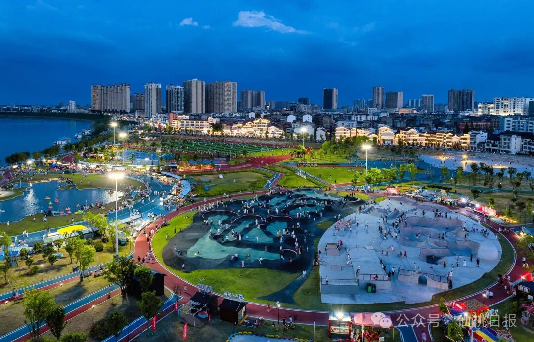 傍晚,汉江奥运公园,运动场人声鼎沸,游乐场欢声笑语,小摊小贩热闹非凡,升腾着满满城市“烟火气”。
