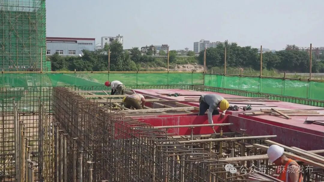 针对高温天气,麻城经济开发区合理安排作业时间,加快推进12个在建项目施工进度,跑出项目建设加速度。