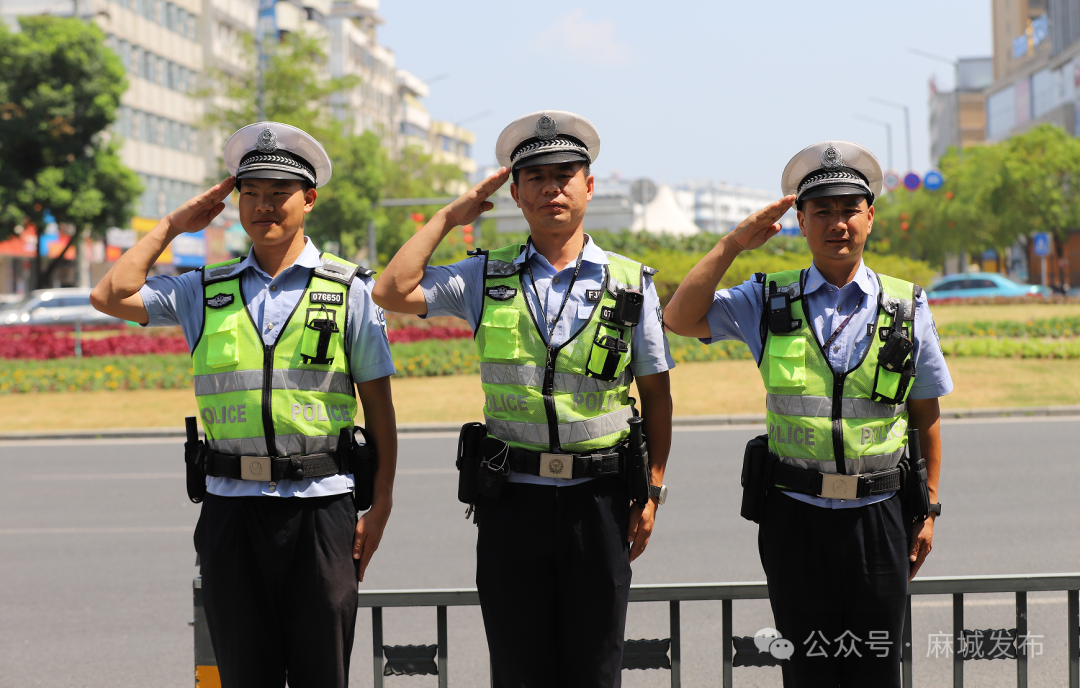 “近40度的高温,确实非常炎热,站在路中间,鞋子里面都是发烫的,衣裤基本都湿透了。但是选择了这个职业,不管是高温还是火海,都得坚持下去。我们最大的愿望就是市民理解、配合,文明驾驶,安全出行。” 麻城市交通管理大队城区中队辅警余响坚定地说。