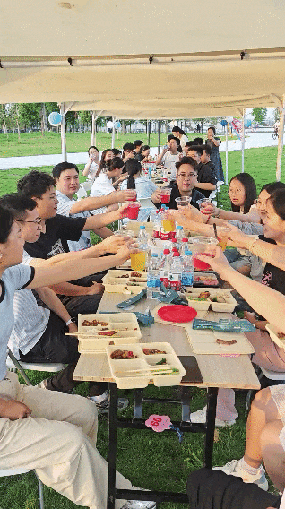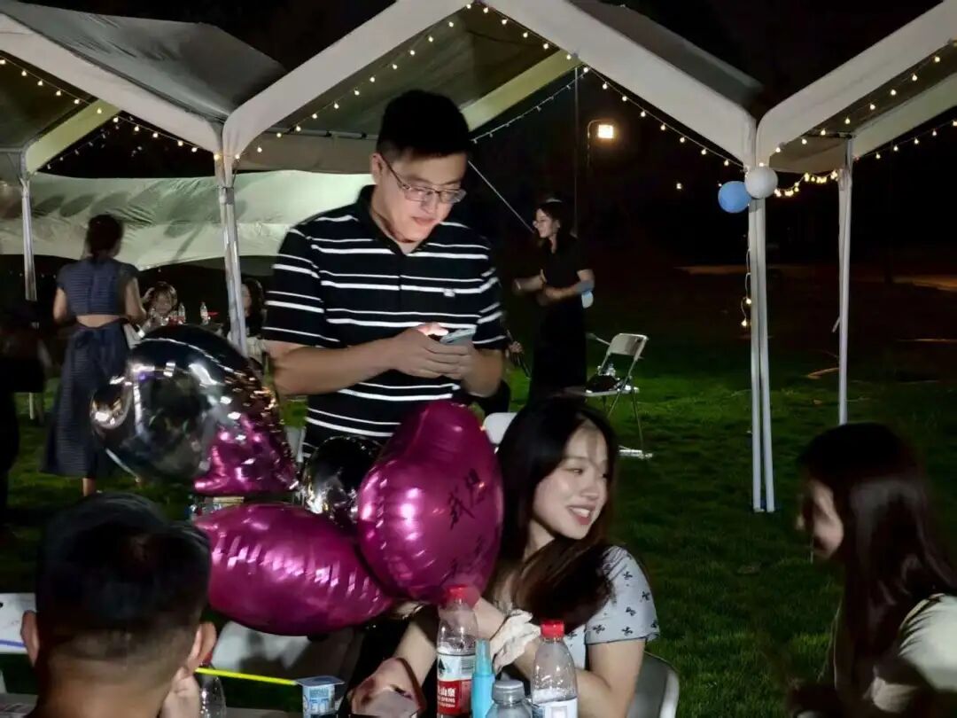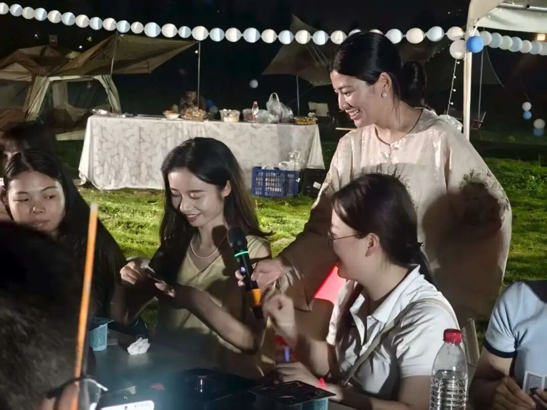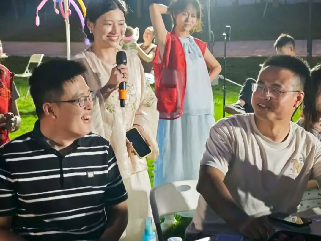 夜幕降临,星空露营与草坪音乐会启幕。伴夏夜晚风、柔和灯光,年轻人从“破冰”到“交心”——互动游戏中相识,音乐里共鸣,星空下畅谈人生理想。