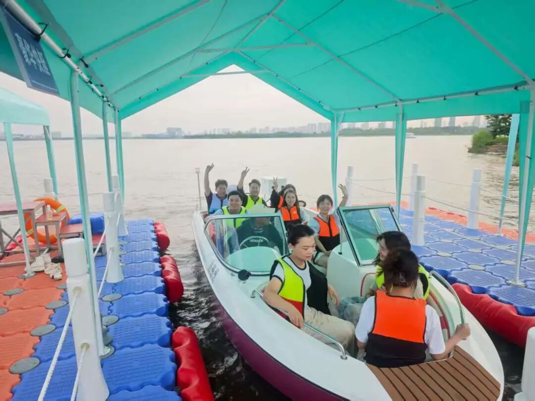 “哗——”香蕉艇疾驰,白潭湖的湖水扑面而来。前排的沈肇修转身抹脸,对身后女士爽朗一笑:“这波‘甜蜜暴击’我先挡了!”风趣调侃间,现场欢快氛围瞬间拉满。