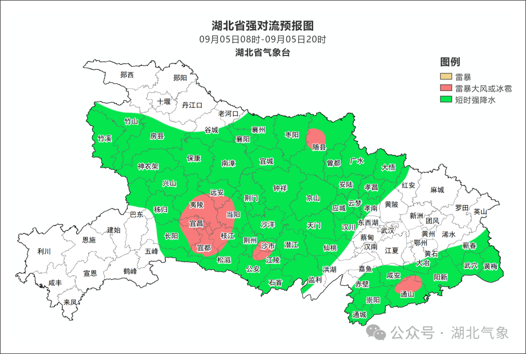 湖北省气象台2025年09月05日07时10分发布强对流黄色省级预警: