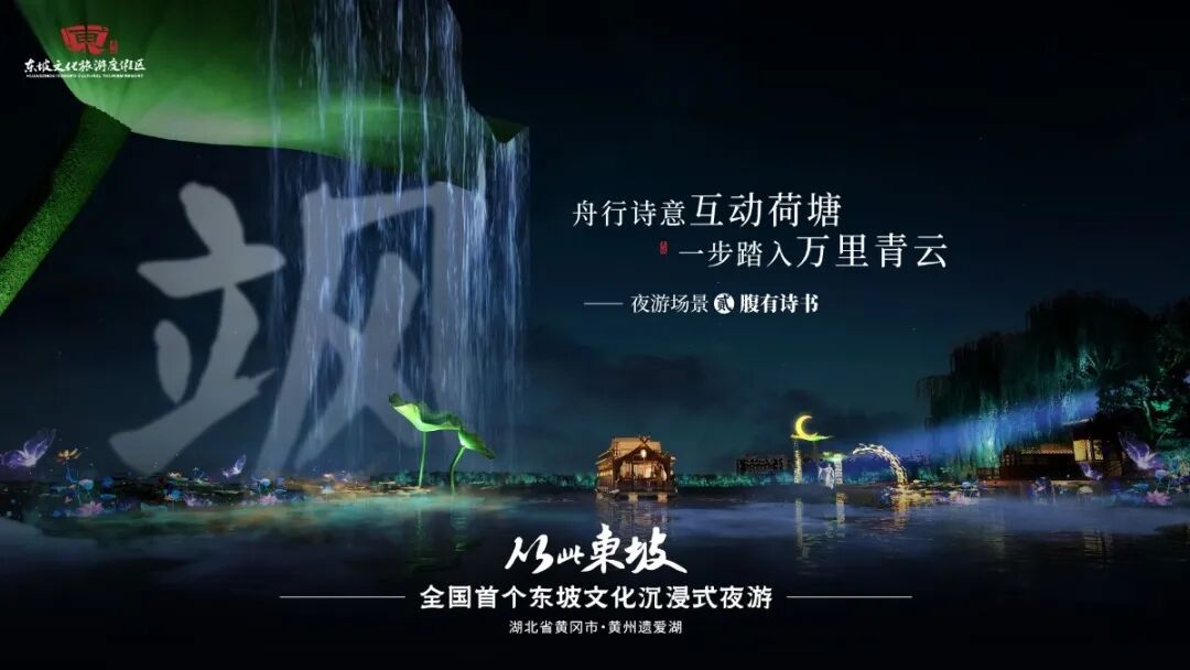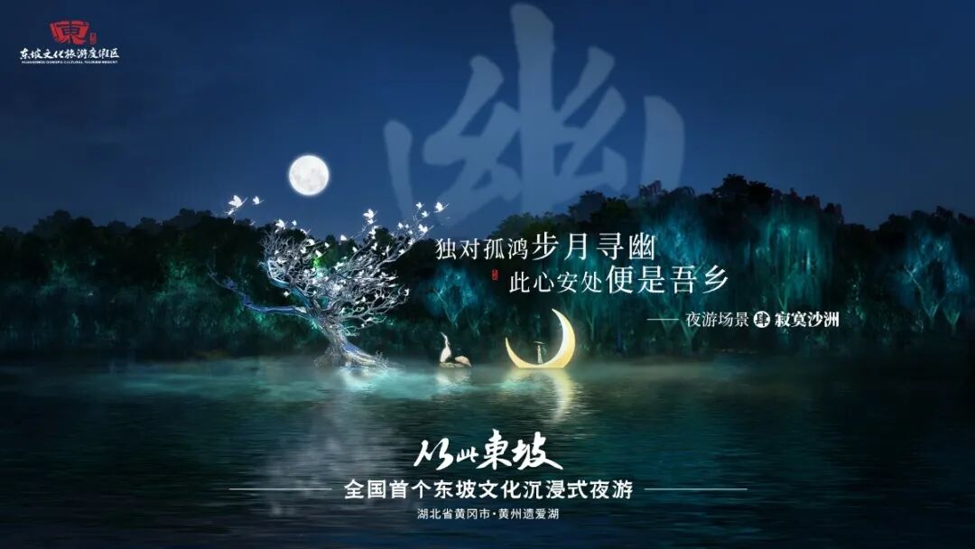 作为全国首个东坡文化沉浸式夜游项目,深度挖掘黄州东坡文化内核,依托湖北黄冈遗爱湖国家湿地公园“一湖两岸”天然格局,紧扣“以诗为境,以月为媒”的设计理念,打造八大核心场景,四公里游船夜游环线,以 “一景一诗词、一月一时空”,完整呈现苏轼从才子苏轼、东坡居士、再到坡仙三次震撼人心的身份蜕变。