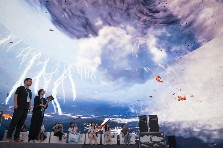 9月12日,观众在2025中国文化旅游产业博览会上参观多业态文旅球幕。