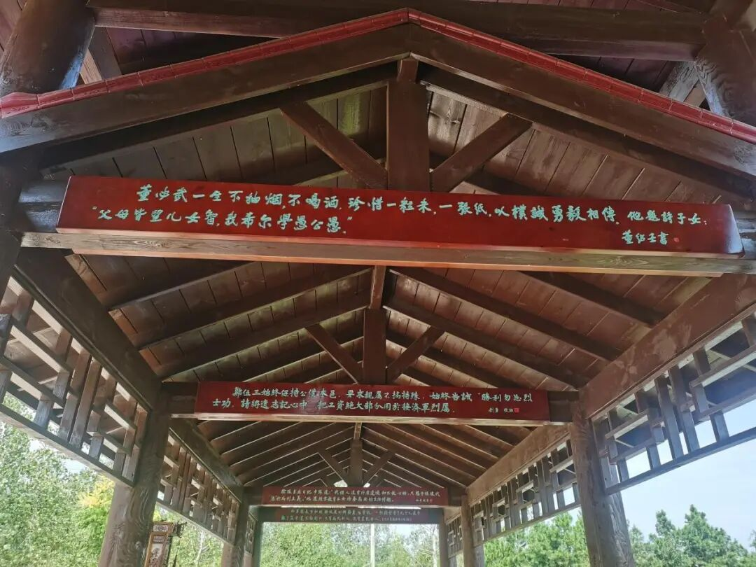 为让这份精神力量具象传承,书艺廊八根横梁被赋予独特寓意。每根横梁两面承载独立又交融的内涵:一面镌刻红安孕育的八例红色家风故事,或为先辈舍家为国,或为后人薪火坚守,皆凝聚红色基因力量;另一面呈现林清芝家族 —— 林氏一脉相承的八条家训,从勤俭持家到崇文尚礼,从孝老爱亲到心怀天下,皆是中华优秀传统文化的生动缩影。