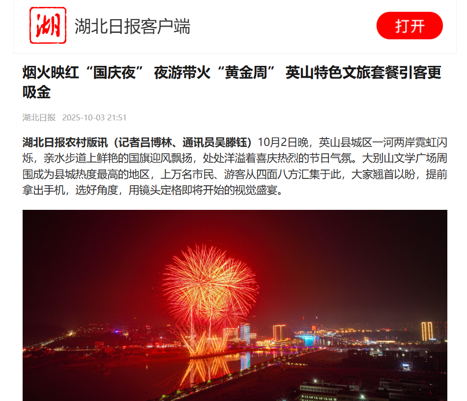 《烟火映红“国庆夜” 夜游带火“黄金周” 英山特色文旅套餐引客更吸金》