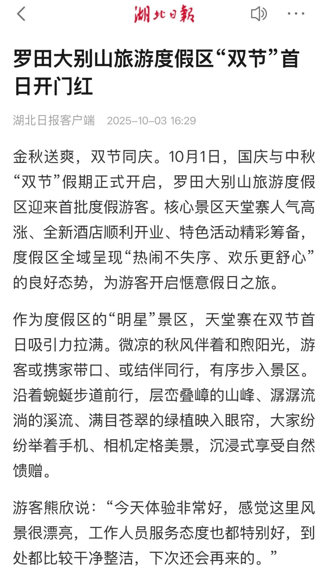 《假期第三天,湖北A级旅游景区共接待游客792.78万人次》