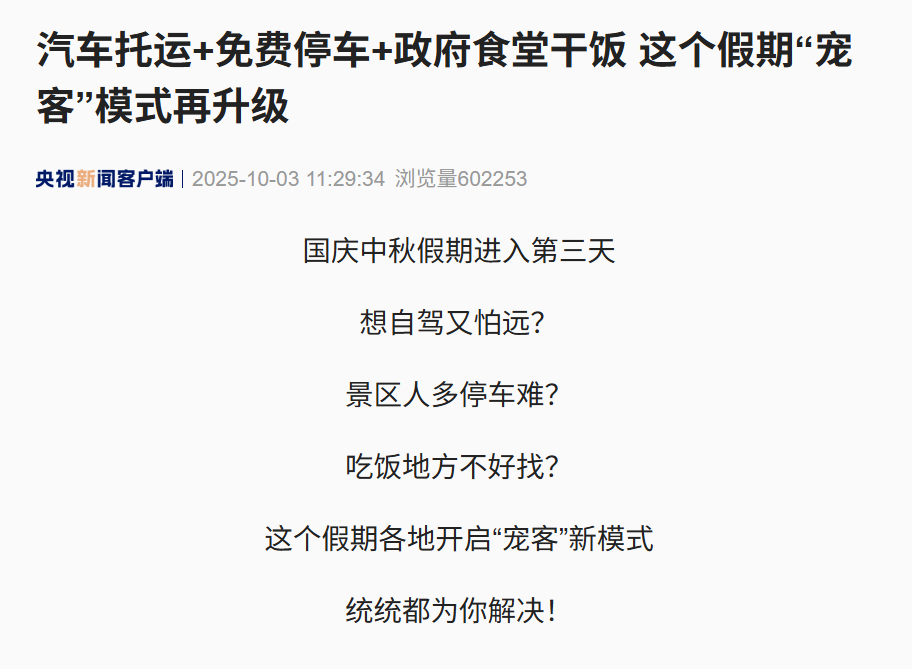 《汽车托运+免费停车+政府食堂干饭 这个假期“宠客”模式再升级》