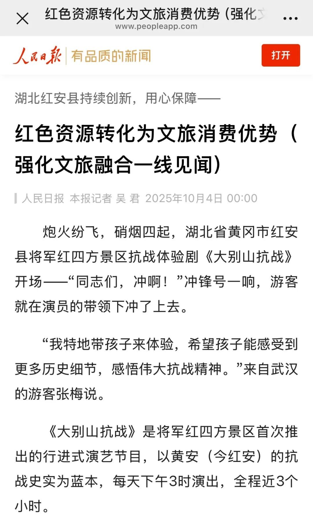 《湖北红安县持续创新,用心保障——红色资源转化为文旅消费优势》