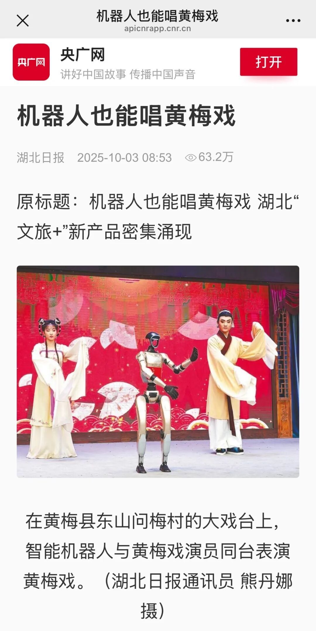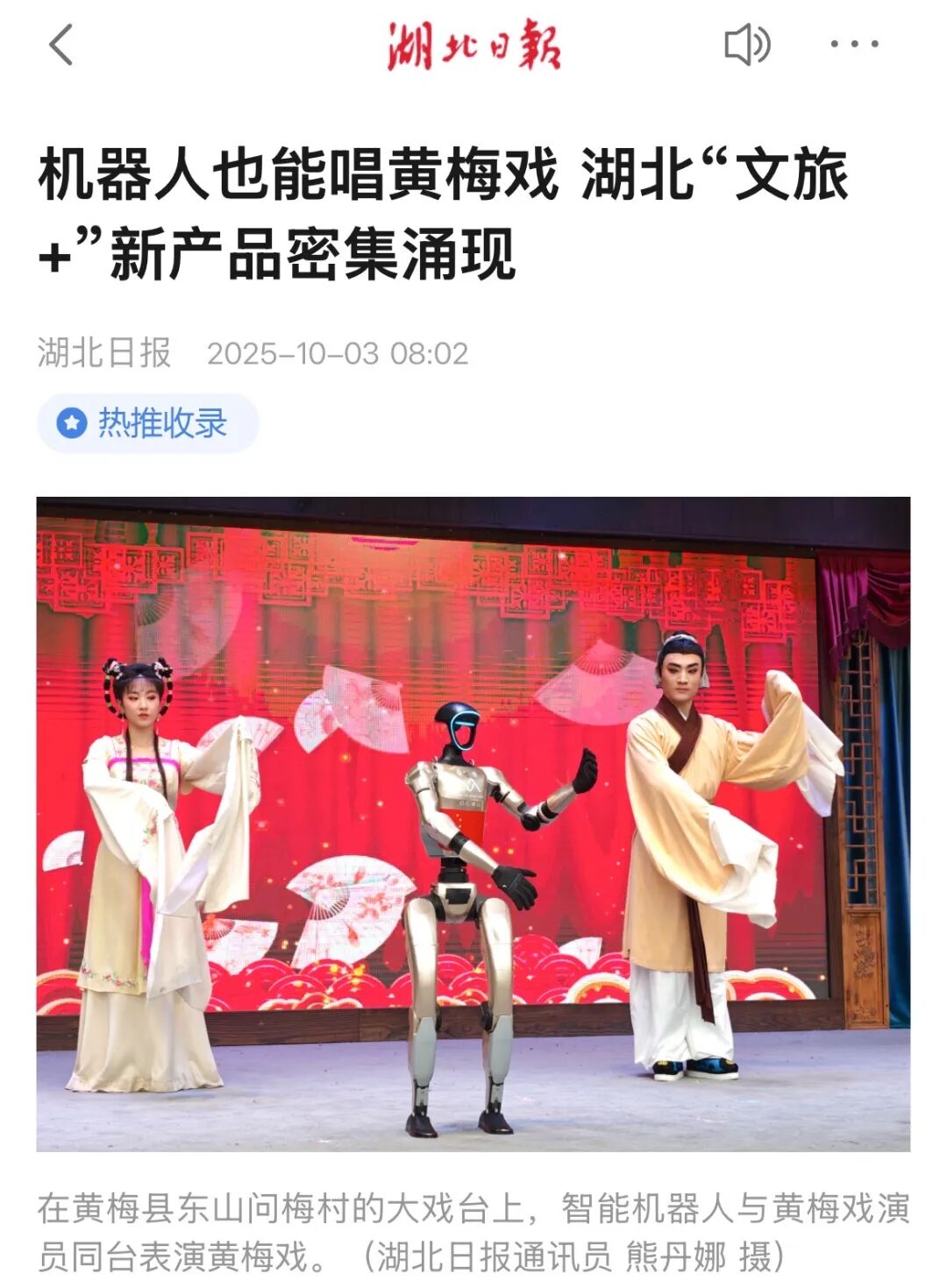 《机器人也能唱黄梅戏 湖北“文旅+”新产品密集涌现》