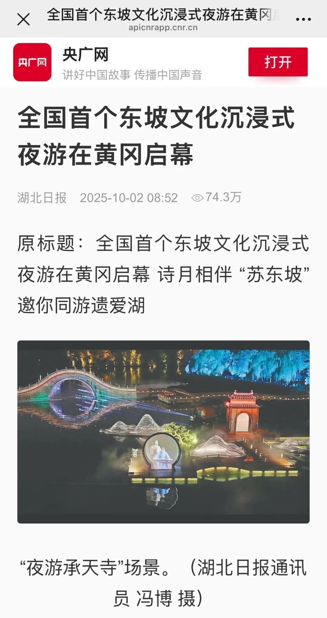 《全国首个东坡文化沉浸式夜游在黄冈启幕》