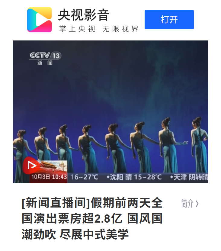 《假期前两天全国演出票房超2.8亿 国风国潮劲吹 尽展中式美学》