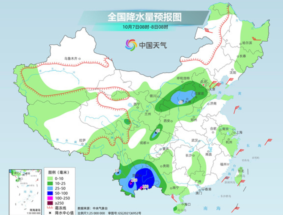 今明天(10月6日至7日),台风“麦德姆”及其环流将影响广西、云南等地,部分地区雨势强劲,需注意做好防范措施。四川盆地和华北地区等地也是降雨频繁,北方多地叠加冷空气影响,未来几天气温明显下降,公众国庆中秋假期返程请注意防雨、保暖。而南方多地则是高温持久,需注意防暑。