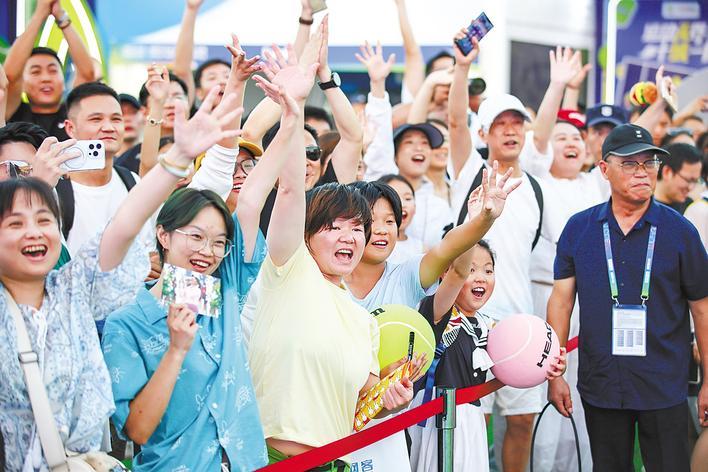 这一切,让台下的杭州游客陈先生一家乐不可支:“世界顶级运动员,既没架子,又放得开,这可是很难看到的名场面。”他们原本只是借双节假期到武汉旅游,一时起意来看看武网,没想到场外活动如此丰富精彩。
