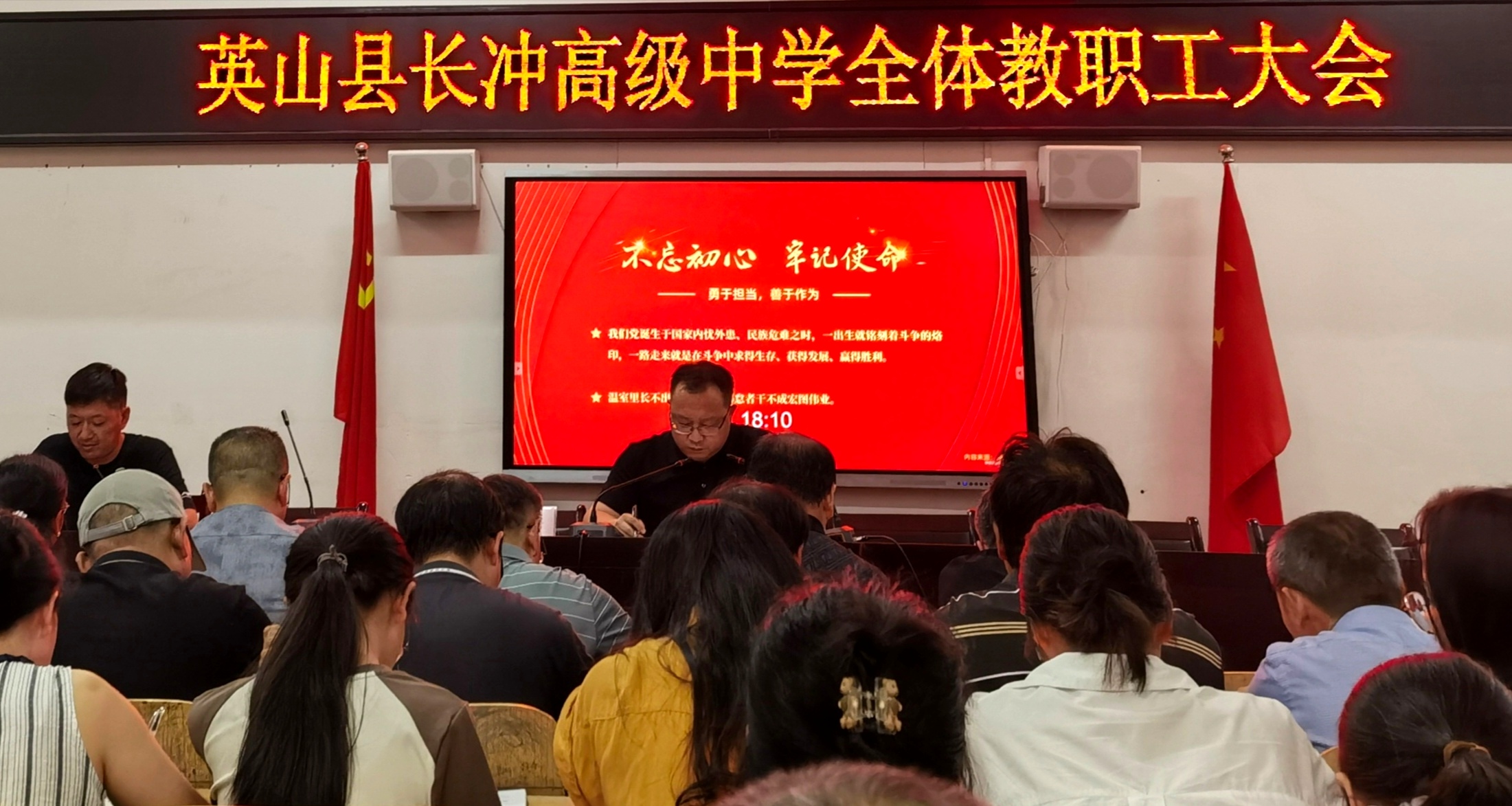 黄冈日报讯(通讯员陈一帆 徐潍)10月11日,英山县长冲高中召开全体教职工大会,开展政治理论学习,全面复盘9月份学校工作,安排部署下阶段重点工作任务。