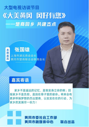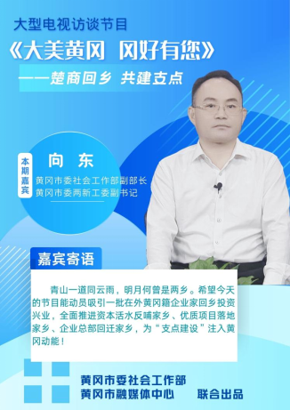 10月中旬,由中共黄冈市委社会工作部、黄冈市融媒体中心联合主办的《大美黄冈 冈好有您》在黄冈电视台综合频道播出,节目第二期“楚商回乡 共建支点”聚焦黄冈楚商“反哺桑梓”投资兴业的系列政策,打造“聚力支点 企聚黄冈”楚商回乡活动品牌,从政策、环境、典型等方面,邀请部门负责人、杰出楚商代表及专家解读分享,回应如何把“服务”作为最好的名片,全方位打造优良营商环境,让回乡楚商“愿回来、能留下、发展好”。