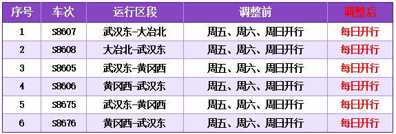 自2025年10月20日起,“新城快线”列车运行计划将作出调整:原仅在周五、周六、周日开行的6列列车,将改为每日开行;日常线每日新增6列车次,调整后每日开行列车将达42列。(详情)