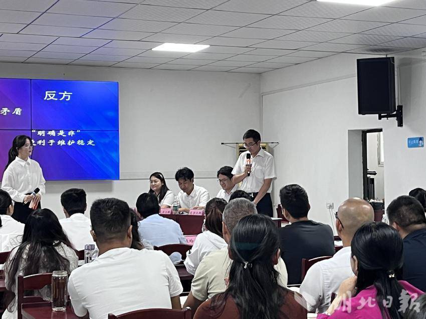 精准施策不仅体现在按需授课上,更在于创新培训形式以激活干部思维。9月19日,在彭思镇干部素质提升营第三期活动中,一场以“面对群众矛盾,‘调和折中’与‘明确是非’孰更利于维护稳定”为议题的专题辩论,引发全镇年轻干部的深入思考。