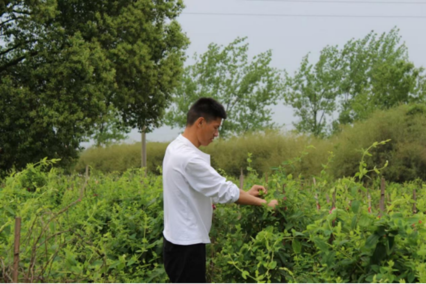 在校期间,张文武系统学习了金银花种植技术,并多次赴山东、河南等主产区考察。2020年,张文武在学校的帮助与支持下,创办了“春色满园种植专业合作社”,首期试种50亩金银花。“选择金银花,是看中其药用价值高、市场前景好,也适合我们这里的气候土壤条件。”