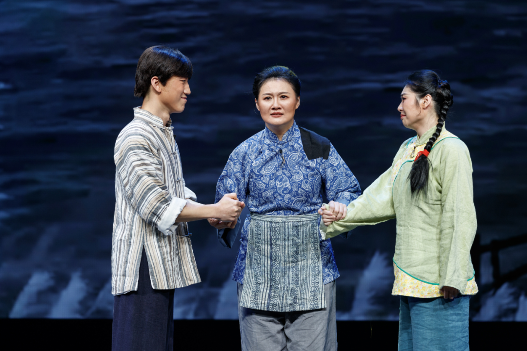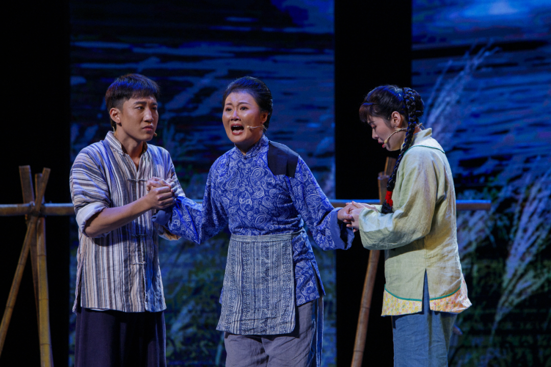 终评舞台上,剧组的心血得到了完美呈现。剧目以渡江战役宏大历史为背景,聚焦团风江边一户普通人家在战火中的婚礼抉择,将“小家婚礼”与“大国大义”紧密相连。演员们用富有张力的表演,将角色内心的挣扎、坚定与奉献刻画得淋漓尽致;简约而富有质感的舞台设计,成功营造出历史现场的沉浸感。当剧中新郎水生毅然告别新娘、回眸奔赴前线的那一刻,家国情怀与儿女情长的交织,达到了震撼人心的艺术效果,现场许多观众不禁潸然泪下。
