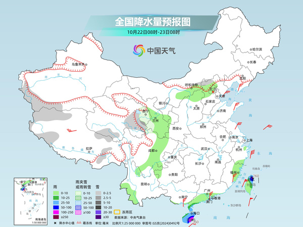 今天,中东部仍将维持降水稀少的格局,在台风和冷空气共同影响下,海南、台湾部分地区仍有明显风雨。中央气象台预计,新疆南疆盆地和西部山区、西藏西部和东部、青海东部和南部、甘肃西南部、河北北部等地部分地区有小到中雪或雨夹雪;海南岛、台湾岛北部、广东雷州半岛等地部分地区有大到暴雨,其中,海南岛东南部、台湾岛北部等地部分地区有大暴雨,局地特大暴雨。