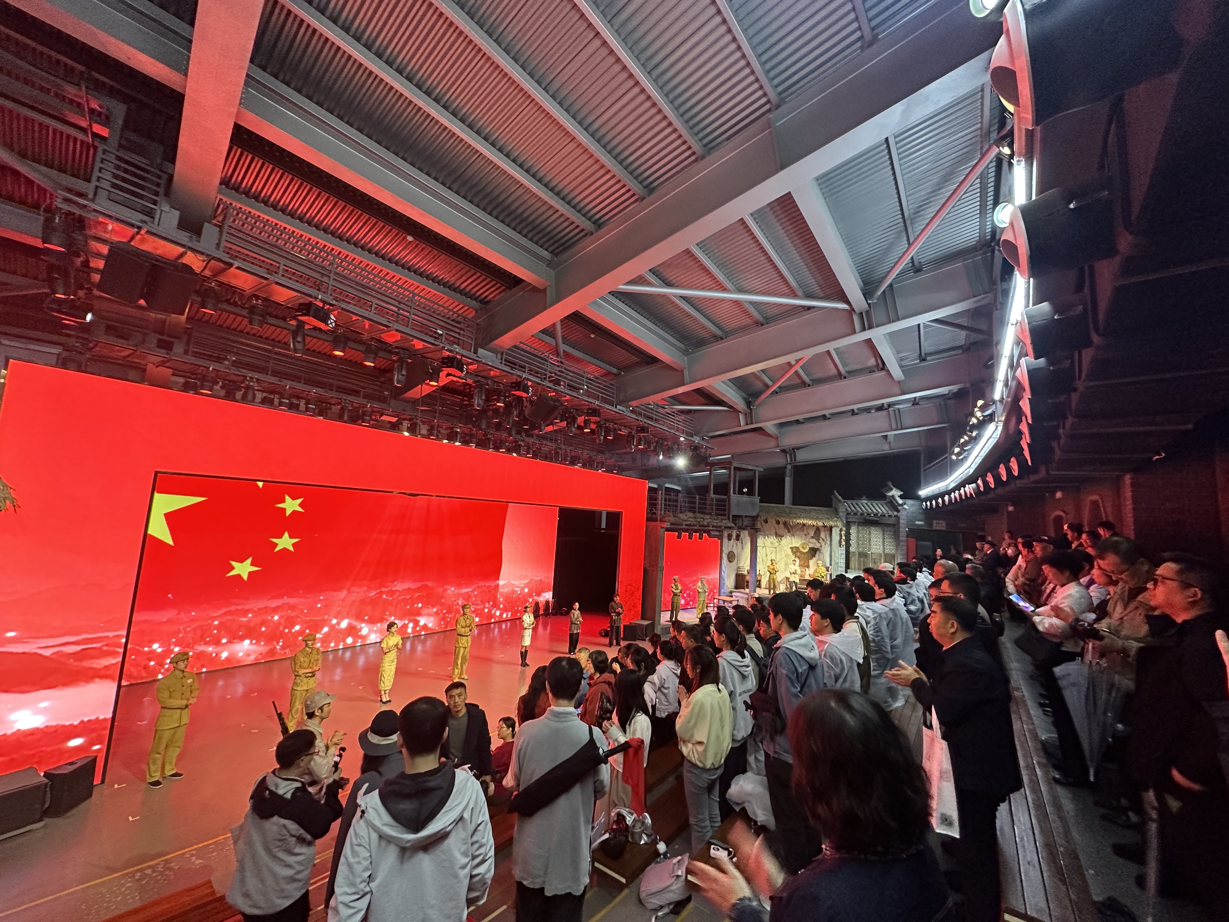 在黄麻起义和鄂豫皖苏区纪念园,考察团冒着细雨,向革命烈士纪念碑敬献花篮,深切缅怀鄂豫皖苏区革命先烈。集体观看红色实景宣讲演艺《我和我的红安》,该剧通过声、光、电复原黄麻起义到抗美援朝的革命画卷,以“实景再现+角色扮演+红色宣讲”,生动再现了“坚守信念、胸怀全局、团结奋进、勇当前锋”的大别山精神。