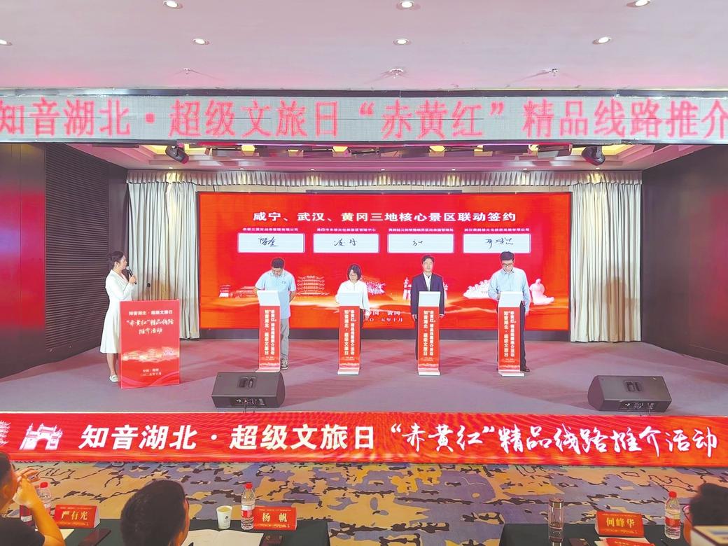 咸宁、武汉、黄冈三地依次进行推介,古赤壁的硝烟烽火、黄鹤楼的千古诗韵、东坡赤壁的江山画卷、红安的铁血丰碑,一个个独特印记,连接着过去与现在,传递着不朽的精神力量,共同点亮了“赤黄红”线路的璀璨坐标。