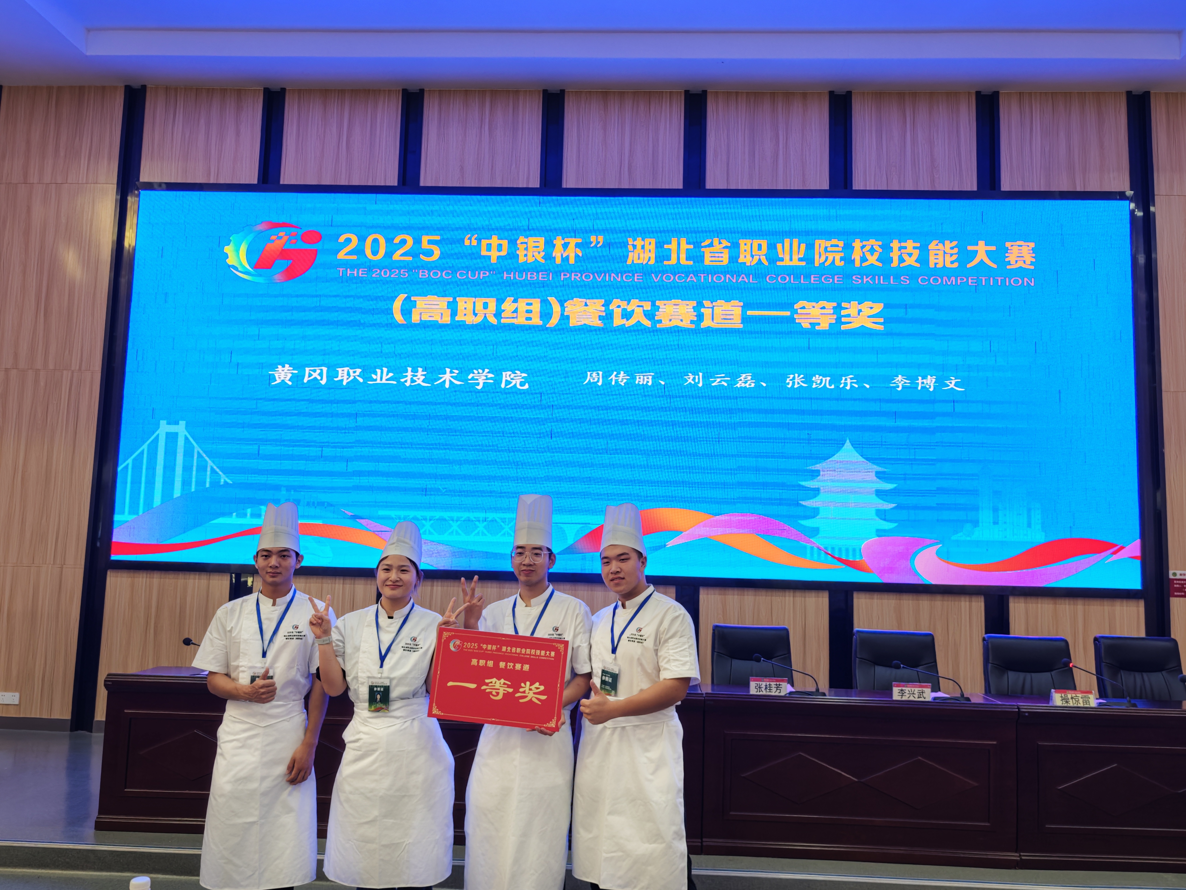 今年7月,2025年湖北省职业院校技能大赛(高职组)餐饮赛道比赛由黄冈职院承办,杨清说,能承办该赛事,说明职院的烹饪工艺与营养专业成绩得到了认可。学生们也不负众望,凭借融入黄梅戏文化的创意作品《一桌好“戏”》夺得该赛事一等奖。