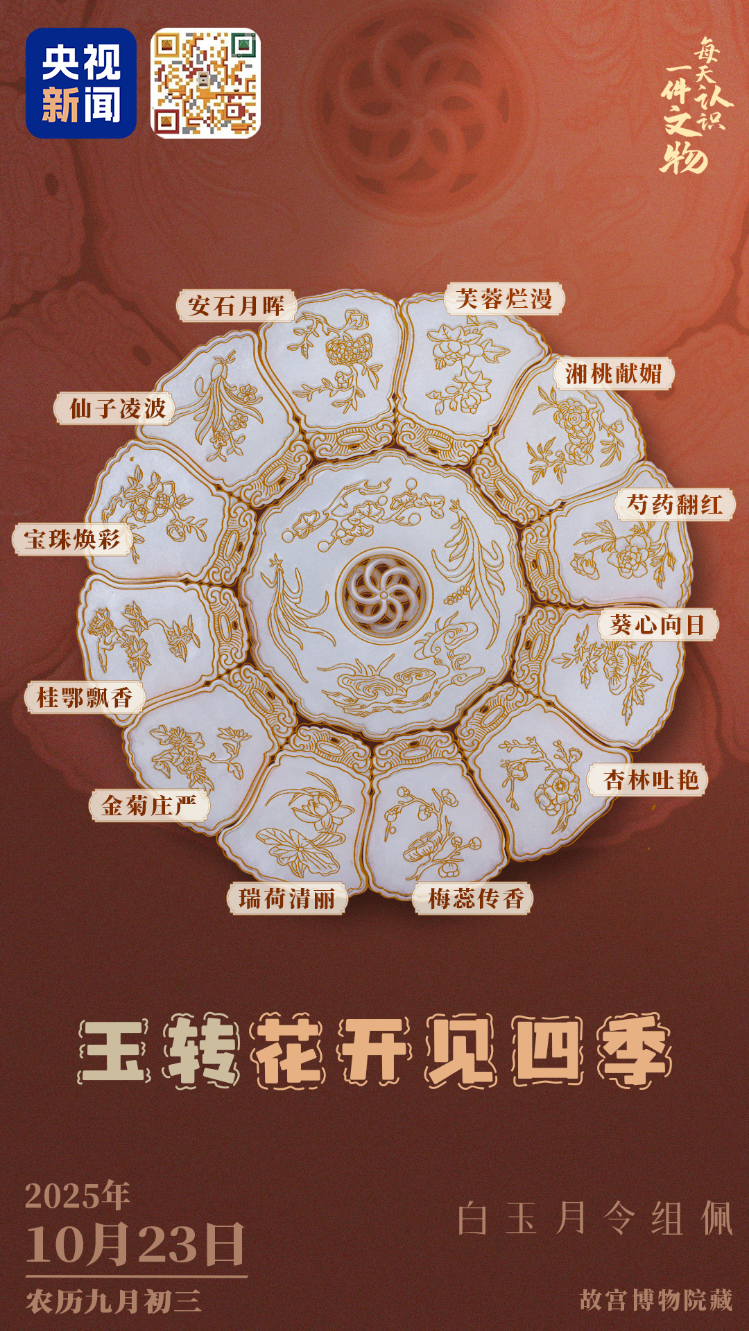 今天,迎来秋季的最后一个节气霜降。霜降时节,草木凋零,故宫里一件会“开花”的文物——白玉月令组佩,却为我们留住了四季的绚烂。它将玉雕、绘画、书法、音律,多种艺术形式融为一体。不仅仅是佩玉,更是一部可佩可赏的微缩艺术集。