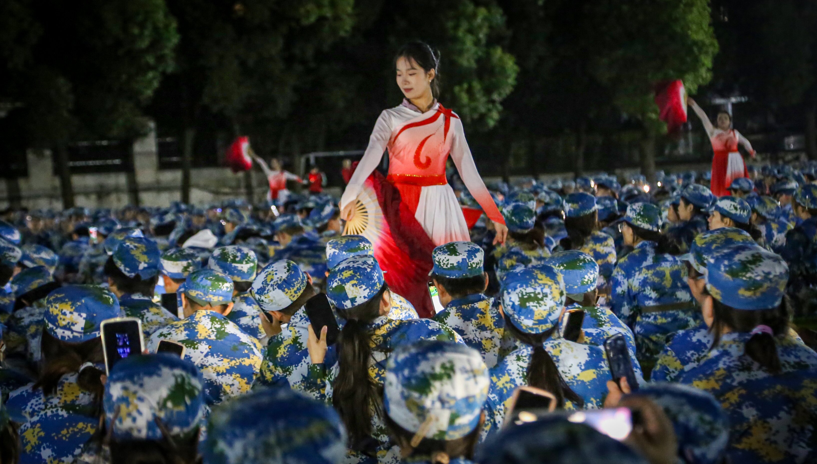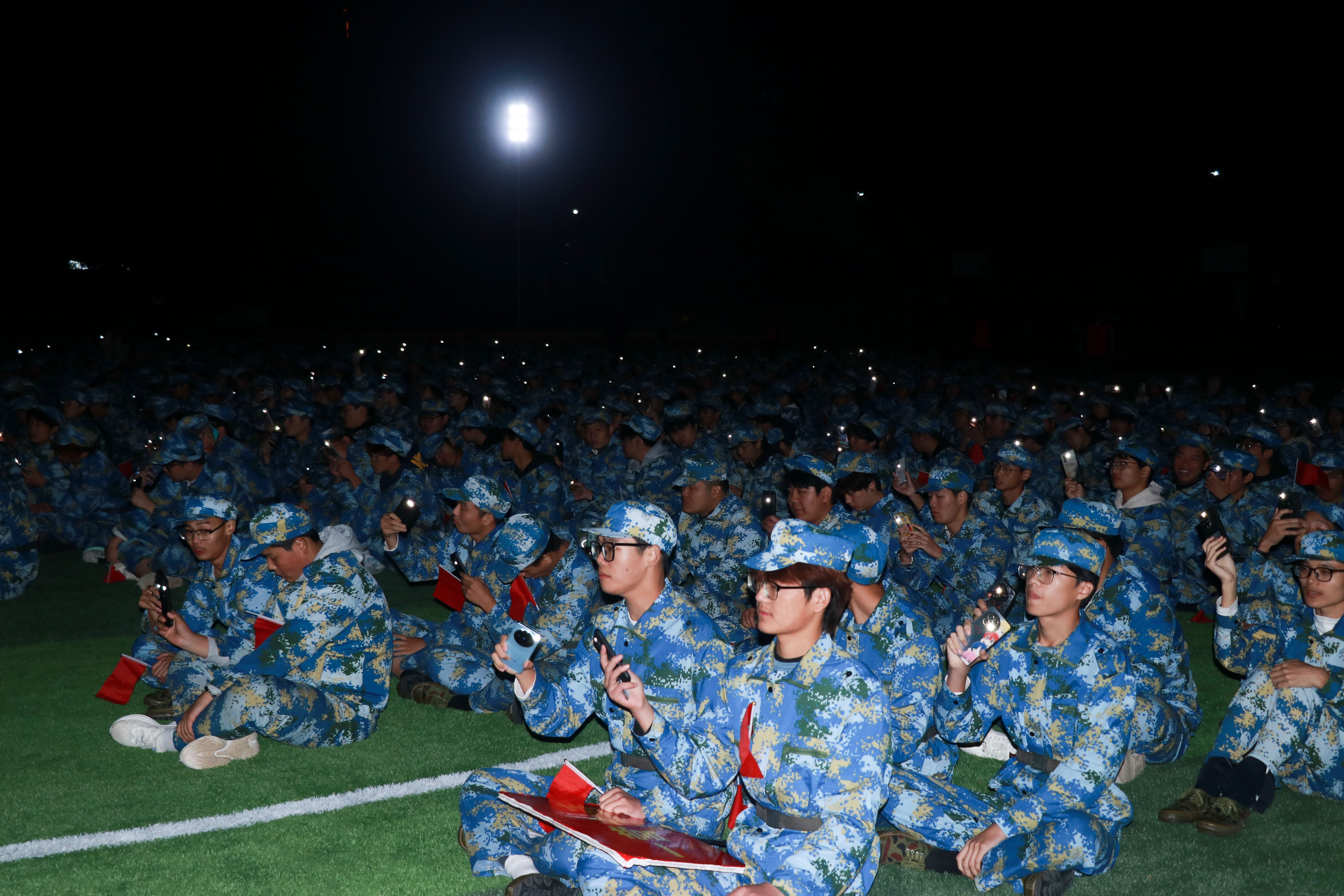 晚七点,拉练队伍凯旋。一场以“纪念抗日战争胜利暨世界反法西斯战争胜利80周年”为主题的大型“星空班会”在夜色中温情启幕,将整场活动推向情感与思想的高潮。