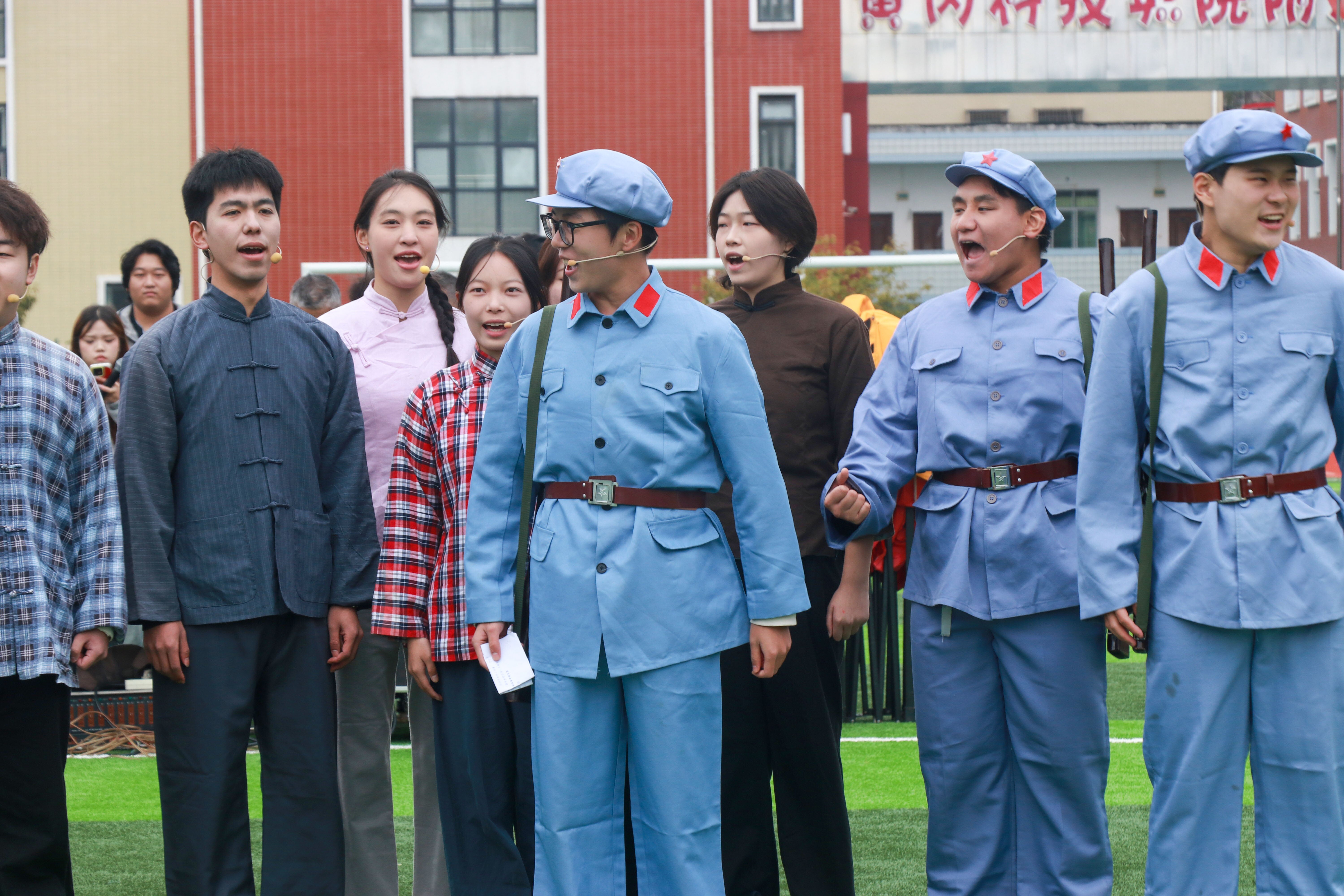 拉练伊始,一部由校团委原创的红色话剧《桥》在行军起点震撼上演,瞬间将所有人的思绪拉回了那段艰苦卓绝的峥嵘岁月。