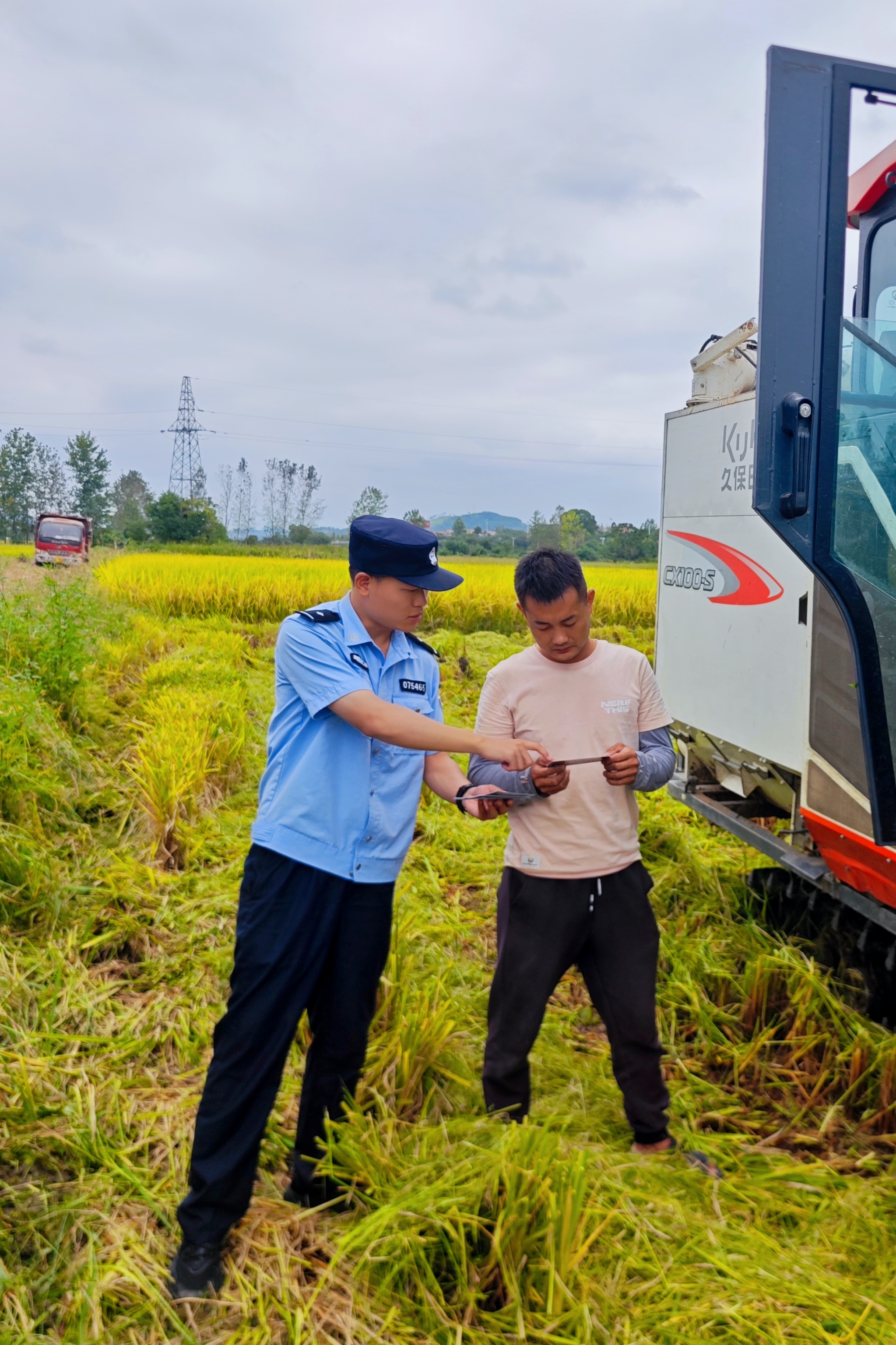10月的乡村,处处洋溢着丰收的喜悦。秋收时节也是电信诈骗的高发期,团风县公安局马曹庙派出所将警务工作融入秋收全链条,打出“护航+服务”组合拳,把安全与安心送到农户身边。图为10月13日,民警深入田间地头开展反诈宣传。通讯员 张力 摄