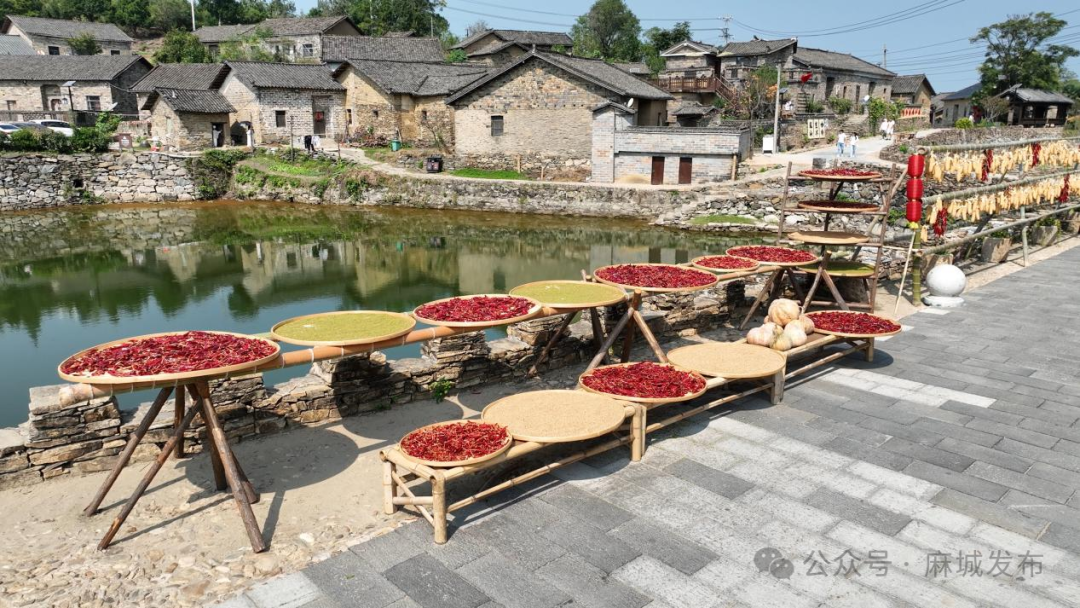 秋风渐起,晒秋正忙。今年国庆期间,位于大山深处的龟山镇东垸村,迎来了一场别开生面的“晒秋”盛景。火红的辣椒铺满竹匾,金黄的玉米缀满竹架,南瓜、绿豆在阳光下熠熠生辉,处处弥漫着丰收的芬芳。高低错落的黛瓦村舍、蜿蜒的青石巷道与五彩斑斓的农作物相映成趣,构成一幅动人的山居秋景图。短短几天,这个深山里寂静的古村落,吸引了来自武汉、黄石、黄冈等麻城周边地区的超过两万名游客前来“打卡”。人们在这里触摸乡愁、体验农趣,感受传统与现代交织的乡村魅力。