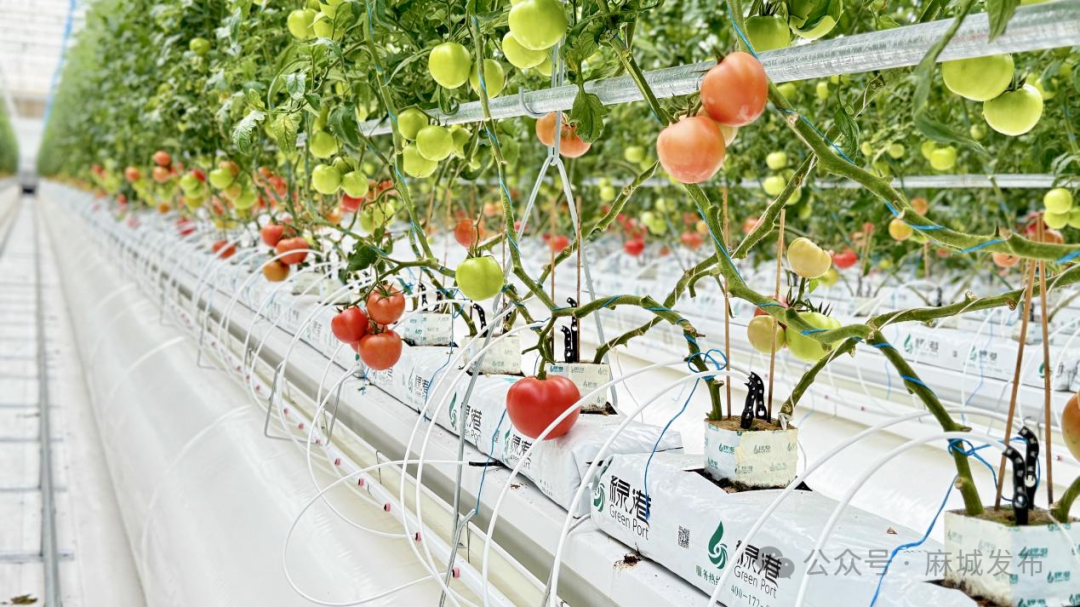 与传统农业印象不同,这里的种植方式令人耳目一新。在智控温室内,每一株番茄都享受着“贵宾级”待遇——它们扎根于洁净的椰糠基质中,沿着专属吊绳挺拔生长,在精准调控的环境里茁壮成长。