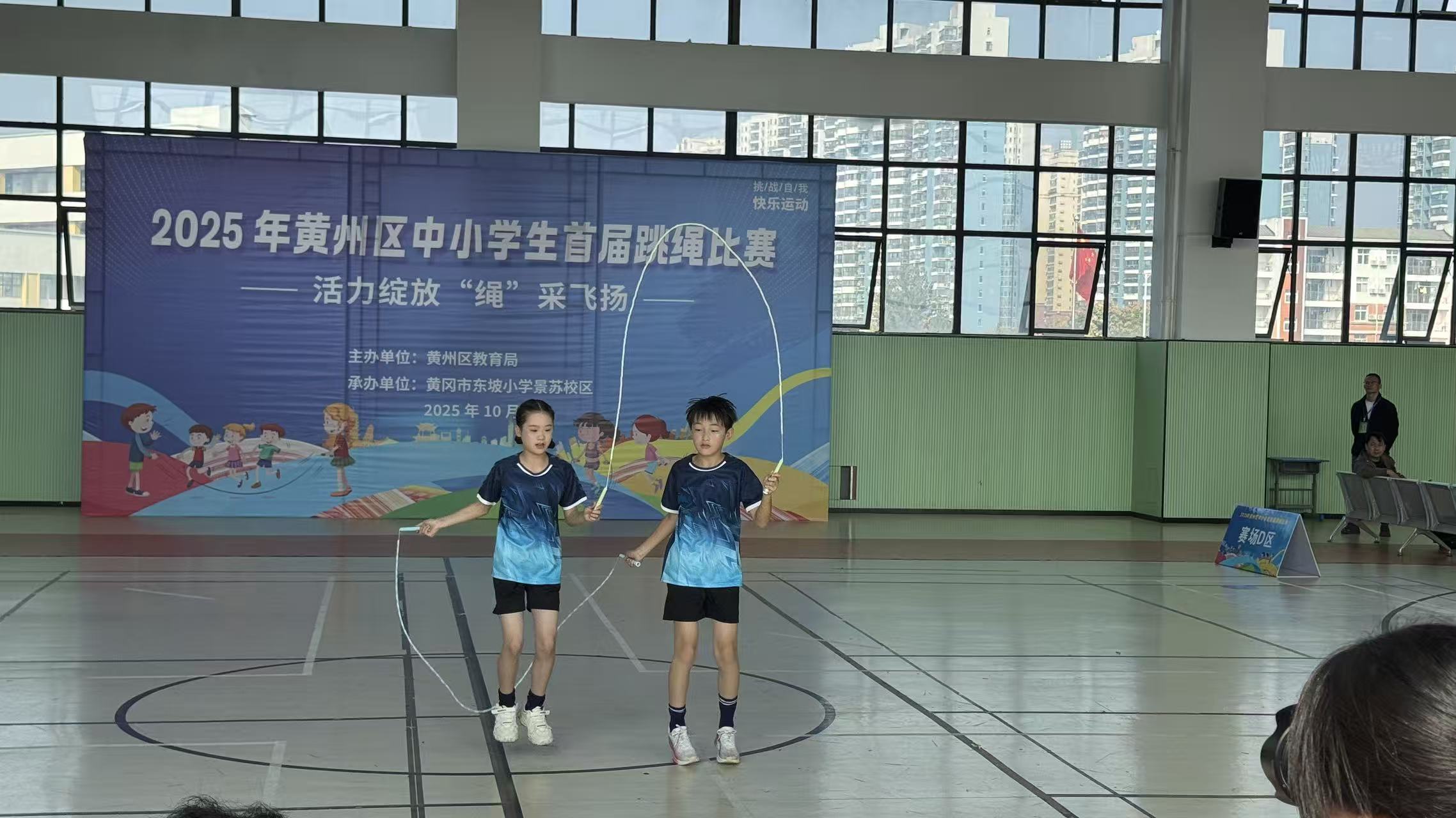 当天上午,黄州区首届中小学生跳绳比赛在市东坡小学景苏校区开赛。开赛前,市东坡小学景苏校区四年级学生进行了“乐动课间”课间操展示。比赛由黄州区教育局主办,市东坡小学景苏校区承办。来自全区共18支参赛队伍200余名学生参加。