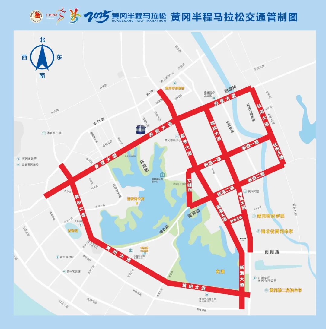 按照2025年黄冈半程马拉松赛事安排,为确保赛事活动顺利进行,根据相关法律规定,决定2025年黄冈半程马拉松赛事期间,对黄冈城区部分道路实行交通管控,具体公告如下: