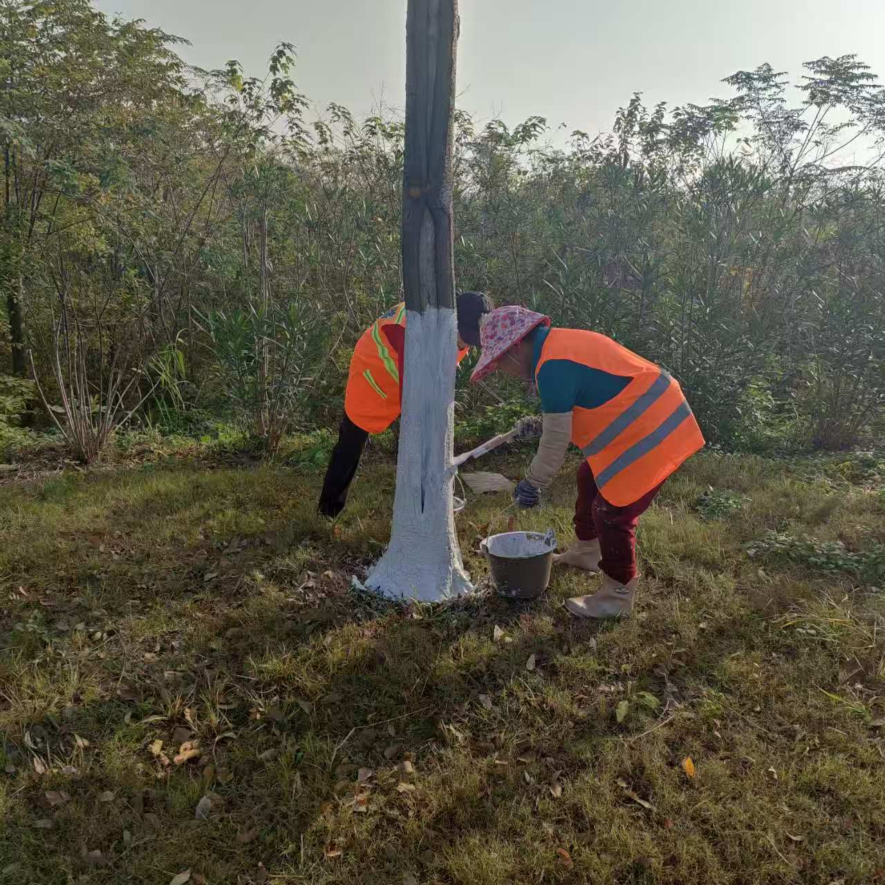 树木刷白是冬季养护的关键措施之一。据现场负责人介绍,专用刷白剂具有防虫、杀菌、防冻等多重作用,还能在夜间反射车光,增强警示效果,有效提升道路通行安全性。