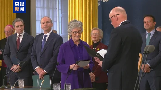 当地时间11日,爱尔兰新任总统凯瑟琳·康诺利的就职典礼在爱尔兰都柏林城堡举行。康诺利宣读并签署声明,正式就职爱尔兰总统。