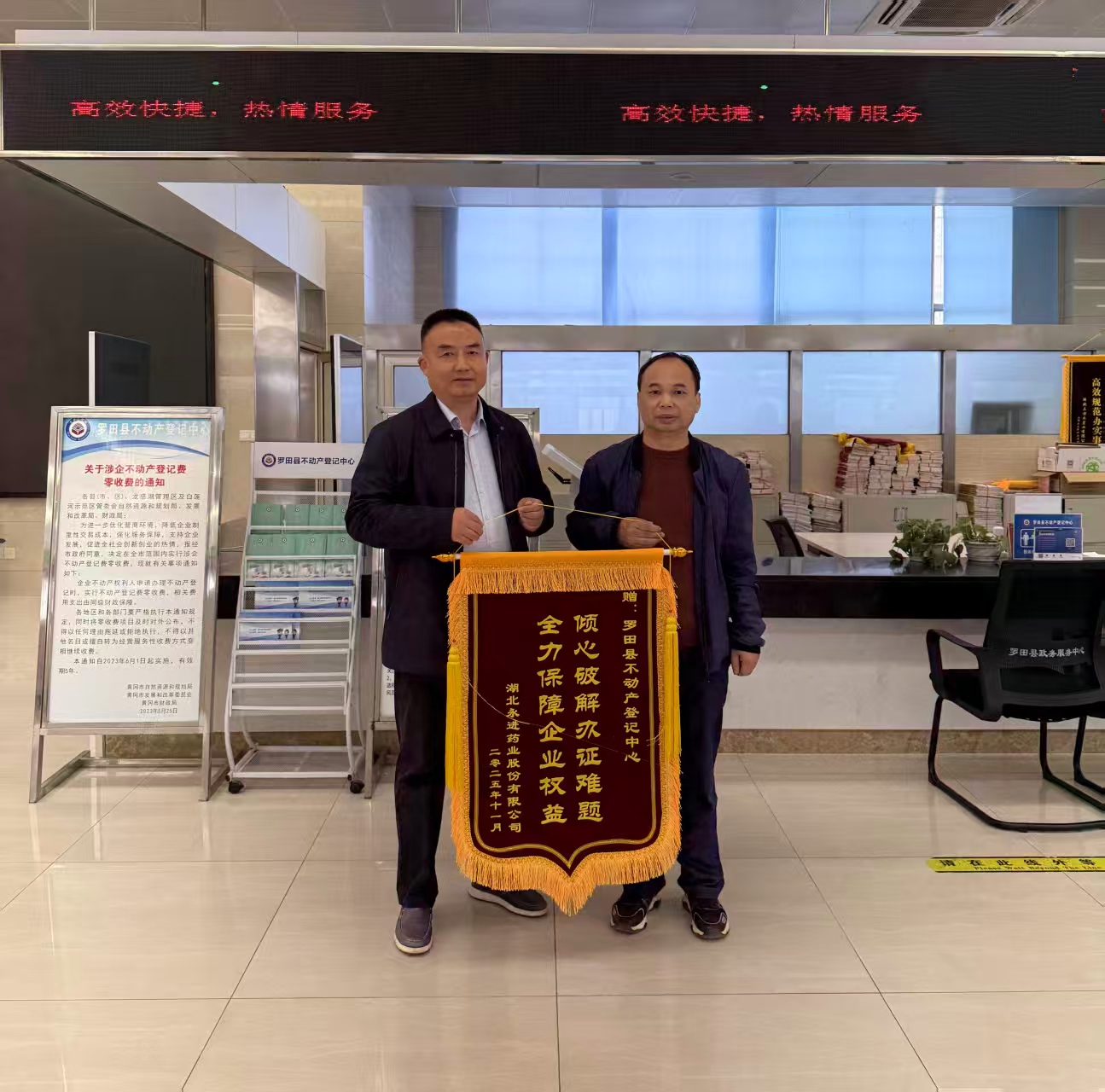 今年11月12日,该企业相关负责人送来一面锦旗到罗田县不动产登记中心窗口,对县不动产登记中心工作人员高效化解难题为企业纾困表示感谢。