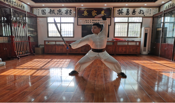 岳家拳传承人张奥,2001年出生,武穴市人。受祖父张业金、父亲张奇钢的熏陶,自幼习武,专攻岳家拳。他不仅深研拳法技艺,更将“精忠报国”精神融入传承实践。在武汉大学就读期间,多次代表学校参加国家及省级武术比赛并屡获佳绩。他联合武汉高校武术社团,策划开展传统武术推广活动,借助互联网平台创新传播方式,扩大岳家拳在青年群体中的影响力。