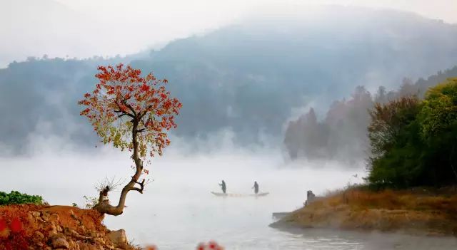无论你什么时候到这里,都一定要早起一次。迎着凌晨时分的朦胧薄雾和橙黄朝阳,你会看到,已经有渔民划着小船开始了一天的工作。
